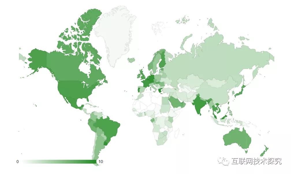 從思科(Cisco)提供的全球 IPv6 部署情況統(tǒng)計(jì)數(shù)據(jù)(圖1)來看,截止到2020年6月,綜合IPv6部署率在30%左右或以上的國(guó)家或地區(qū)占了地圖面積一半以上。全球IPv6部署率是根據(jù)各個(gè)國(guó)家地區(qū)的網(wǎng)絡(luò)(IPv6 Prefix/Transit IPv6 AS),IPv6網(wǎng)站及IPv6用戶等數(shù)據(jù)按照一定權(quán)值并計(jì)算得出的IPv6部署綜合情況。圖中顏色越深的地區(qū),表示其IPv6部署程度越高,相應(yīng)的IPv6部署率數(shù)值越大。