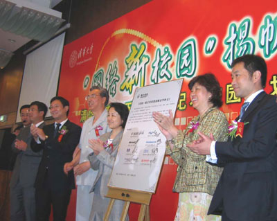 國(guó)家發(fā)改委、教育部、清華大學(xué)的領(lǐng)導(dǎo)與賽爾網(wǎng)絡(luò)董事長(zhǎng)梁猷能先生、合作廠商、銀行代表共同啟動(dòng)“網(wǎng)絡(luò)新校園”計(jì)劃