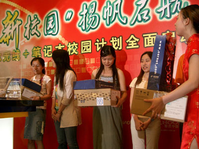 有沒有可能讓每個(gè)大學(xué)生都能擁有自己的筆記本電腦,每個(gè)大學(xué)生能隨時(shí)隨地上互聯(lián)網(wǎng)學(xué)習(xí)?這并不是天方夜譚。6月9日,中國(guó)教育和科研計(jì)算機(jī)網(wǎng)(CERNET)在清華大學(xué)宣布啟動(dòng)“網(wǎng)絡(luò)新校園”行動(dòng)計(jì)劃,在建設(shè)100所無(wú)線校園網(wǎng)的同時(shí),力爭(zhēng)在2006年向全國(guó)大學(xué)生提供30萬(wàn)臺(tái)特供筆記本電腦,并在國(guó)內(nèi)大學(xué)逐步推廣大學(xué)生筆記本電腦普及計(jì)劃。同時(shí)CERNET將為大學(xué)生提供貸款購(gòu)機(jī)擔(dān)保,最低每日支付10元人民幣就可以購(gòu)買一款學(xué)生用筆記本電腦。同時(shí),這些同學(xué)也將第一次享受到IPv6/IPv4雙網(wǎng)接入服務(wù),提前享受到下一代互聯(lián)網(wǎng)接入服務(wù)。