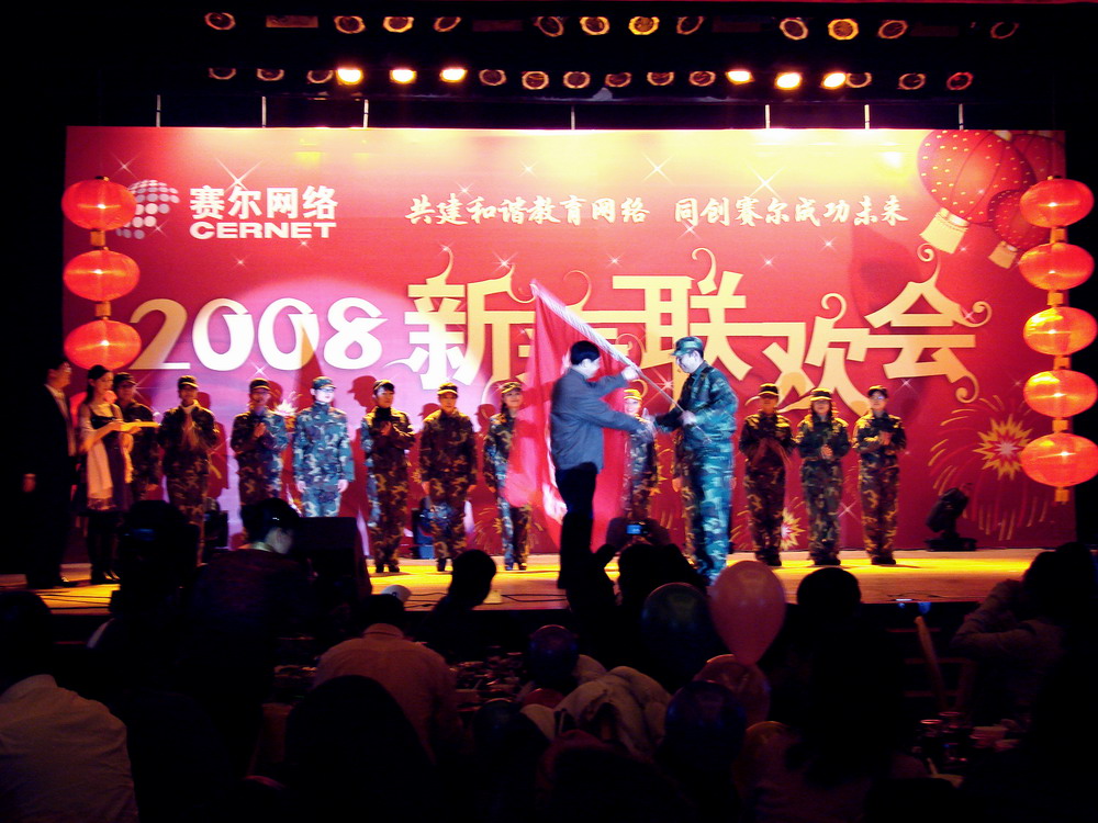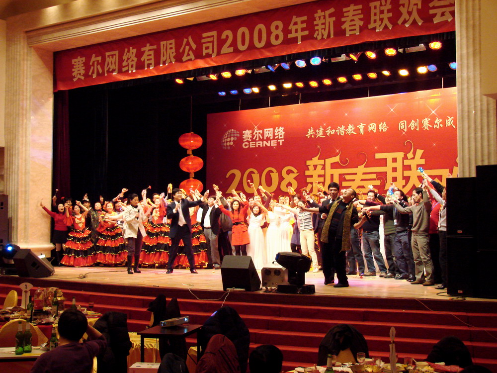 1月30日晚19:00,北京西郊賓館一號(hào)樓銀杏大廳內(nèi)座無虛席、歡聲笑語,洋溢著節(jié)日的氣氛。以“共建和諧教育網(wǎng)絡(luò),同創(chuàng)賽爾成功未來”為主題的賽爾網(wǎng)絡(luò)有限公司2008新春聯(lián)歡會(huì)在這里隆重舉行,清華大學(xué)領(lǐng)導(dǎo)與CERNET專家、公司領(lǐng)導(dǎo)、全體員工以及分公司、子公司的代表380多人歡聚一堂,共慶佳節(jié)。