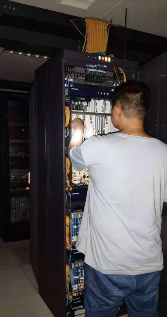 20:00,機(jī)房傳輸設(shè)備開始由發(fā)電機(jī)供電,節(jié)點(diǎn)老師胡志宇檢查省網(wǎng)傳輸設(shè)備板卡。