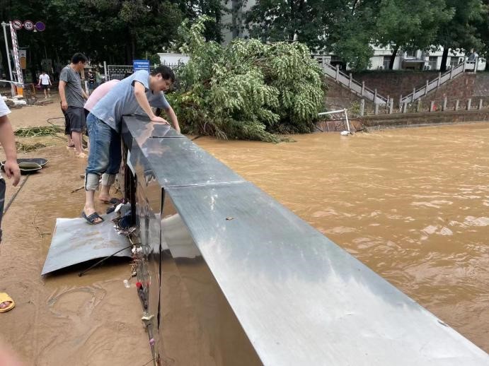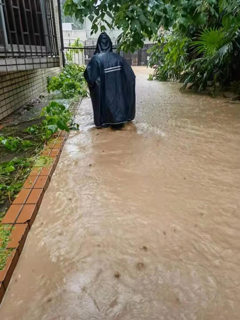 • 05:10 巡視校內(nèi)金水河情況,水位有所下退,學(xué)校圍墻被部分沖塌。