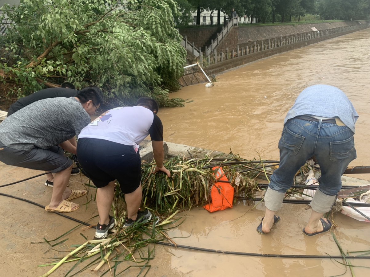 7月21日,9時,鄭州大學(xué)節(jié)點(diǎn)運(yùn)行部主任陳剛帶領(lǐng)節(jié)點(diǎn)老師、通信運(yùn)行部同事、河南分公司同事?lián)尵冉鹚觾?nèi)被水沖刷的光纜。
