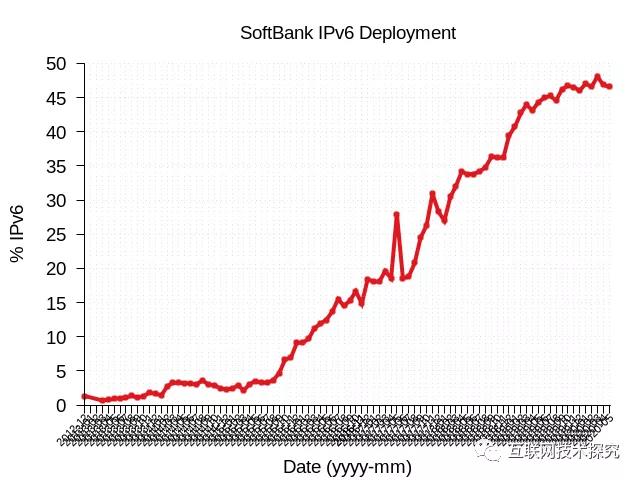 圖7 Soft Bank IPv6部署曲線圖 |