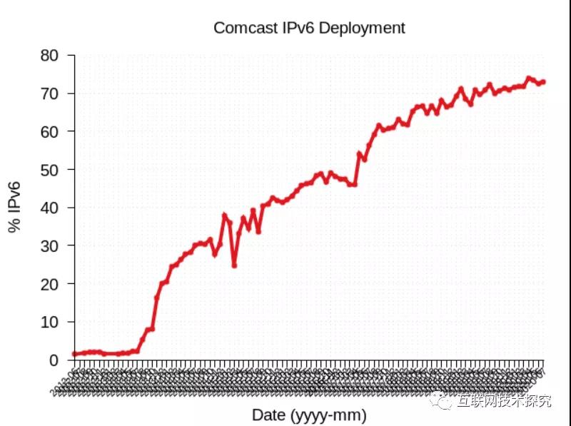 圖9 ComCast IPv6部署曲線圖 |