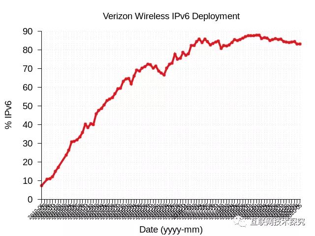 圖1 Verizon Wireless IPv6部署曲線圖 |