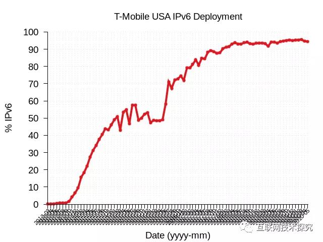 圖2 T-Mobile USA IPv6部署曲線圖 |